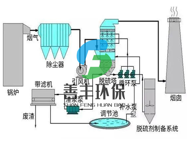 廢氣處理的工藝流程;排出的酸霧廢氣進入風管一經過酸堿廢氣處理塔→風機→風管達標排放。